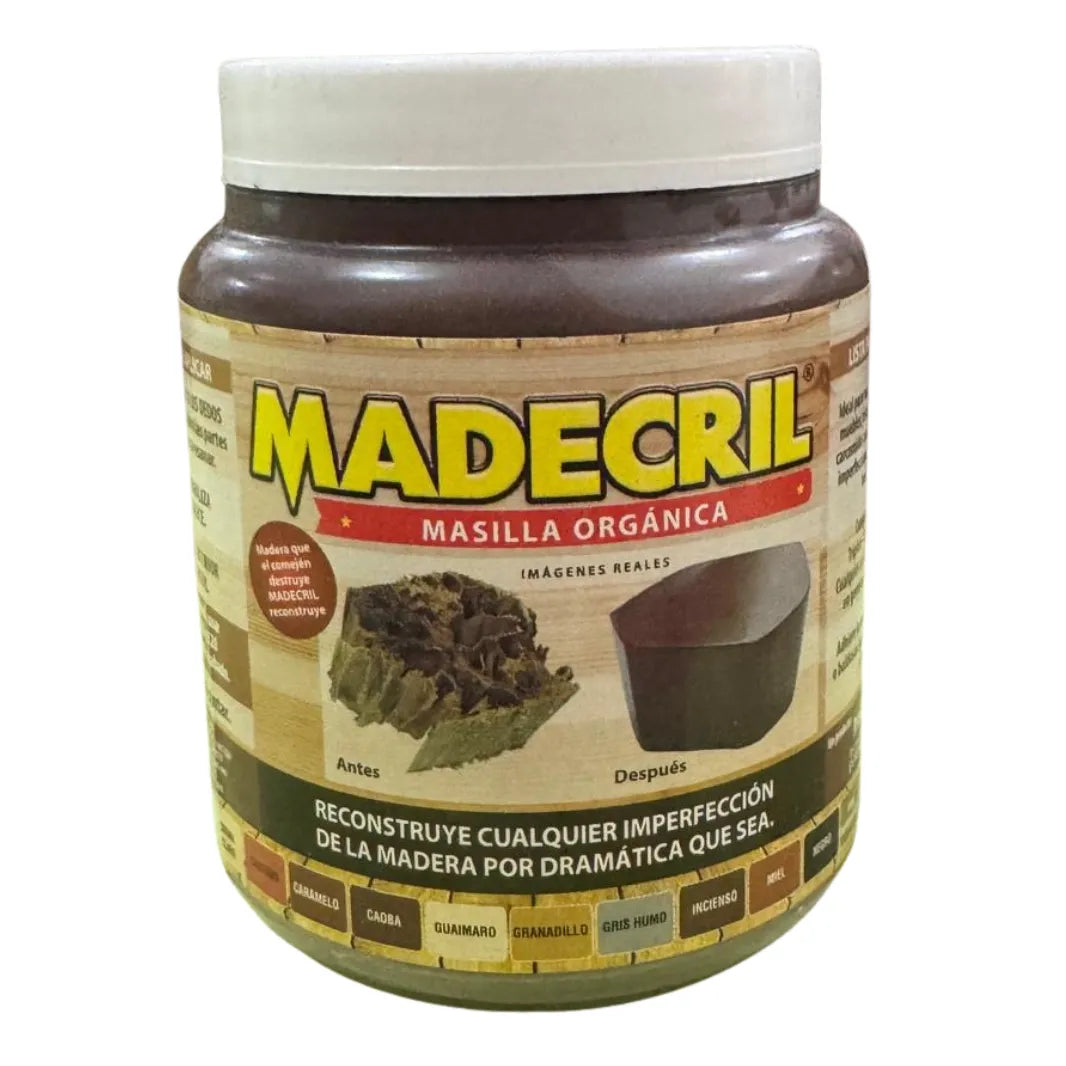 Madecril es una resina orgánica para reparación de madera, ideal para corregir imperfecciones, rellenar grietas y mejorar el acabado en superficies de madera. Está diseñada para ofrecer reparaciones firmes, duraderas y estéticamente limpias, tanto en trabajos profesionales como domésticos.